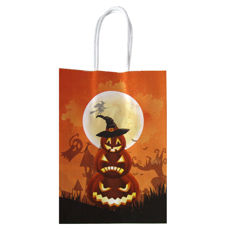 Пакет подарочный "Крафт. Хеллоуин. Тыквы" 15*8*21 см